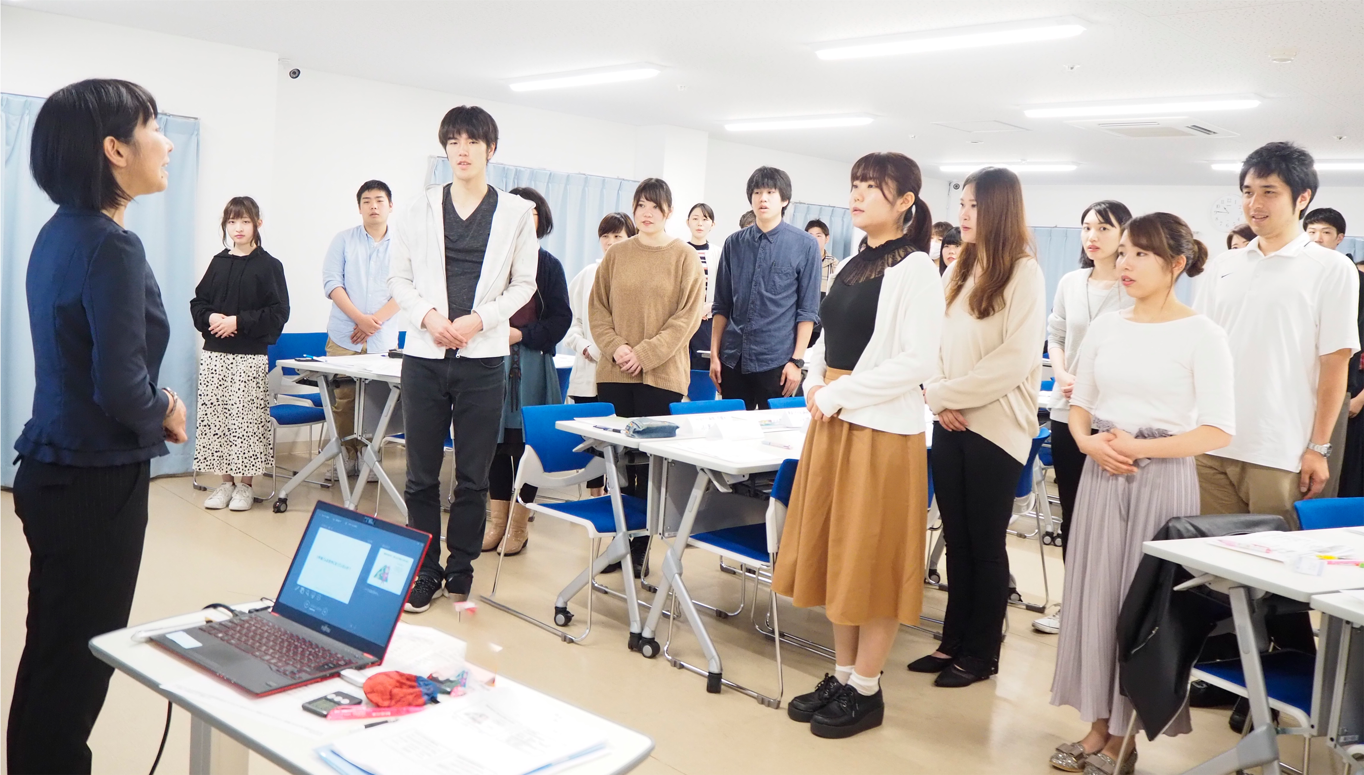 全体研修の翌日から職種別研修(2~3日)が始まります。 各職種の業務内容や1日のタイムスケジュールなど実務の説明を受けつつ、事前に先輩社員とコミュニケーションをとることで、 配属前の緊張や疑問を減らし、仕事に前向きに取り組めるよう新入社員をフォローします。 研修後に先輩社員を交えた懇親会を実施している職種もあります。