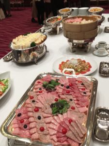 懇親会では、ビュッフェ形式で豪華な料理が振る舞われました。今回の研修で初めて会う内定者もいたと思いますが、積極的にコミュニケーションを取っている様子が見られ、打ち解けているようで安心しました。