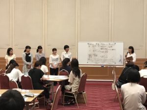 グループワークの最後には、全員の前で話し合ったことを発表し、みんながどんなことを考えているのか、それを見た先輩社員はどう思ったか、お互いに伝い合いました。